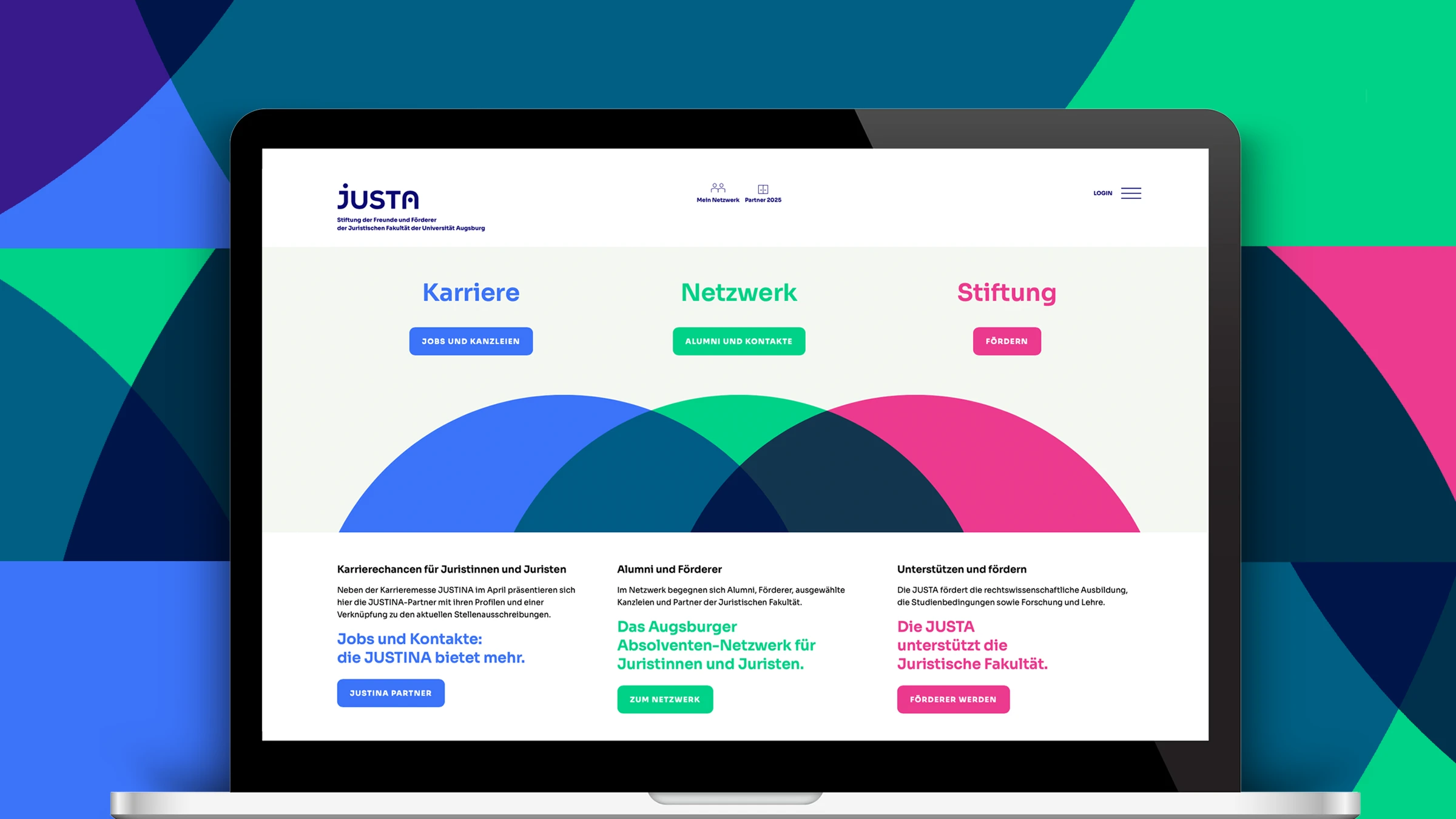 Neues Corporate Design und eine Website für die »Stiftung der Freunde und Förderer der Juristischen Fakultät der Universität Augsburg«. Neben der Darstellung der Stiftung und ihrer Arbeit für die Förderung der rechtswissenschaftlichen Ausbildung an der Universität Augsburg haben wir ein Portal zur Vernetzung von Alumnis der Juristischen Fakultät entwickelt. Einen direkten Kontakt zu potentiellen Arbeitgebern bietet der Karrierebereich mit ausführlichen Kanzlei- und Firmenprofilen. Kein Xing, kein Linkedin, sondern ein exklusives Netzwerk für Juristen.